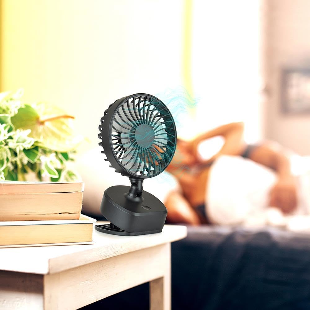 RECHARGEABLE AND PORTABLE: The fan is fully rechargeable using any USB power source. You can charge it at home, in the office, or on the go by connecting it to a PC, laptop, or power bank. Its compact size makes it perfect for travel. It has three adjustable speed settings: high for a refreshing blast of air on hot days, medium for a comfortable and consistent airflow, and low for a gentle breeze that keeps you at ease. LONG BATTERY LIFE: With over 4 hours of continuous use on the fastest speed, this fan won’t leave you sweating during those hot summer days. Even on slower speeds, it provides reliable cooling. POWERFUL BUSHLESS MOTOR: Despite its small size, the fan packs a punch! The brushless motor ensures super quiet operation while delivering a powerful blast of cool air. Say goodbye to noisy fans! VERSATILE CLIP ON AND DESK FAN: This mini fan can be placed on any flat surface, such as your office desk or bedside table. The Clip-On Design ensures a strong clip with a large 4cm jaw, allowing you to attach the fan to various surfaces such as a computer monitor, baby stroller, or bed headboard. The fan is equipped with rubber pads inside the clip so it would not damage your furniture and will not slip. Enjoy a breeze while working, cycling, relaxing, or sleeping. MENOPAUSE RELIEF: For women experiencing hot flashes due to menopause, this fan can be a lifesaver. Its compact design makes it discreet and easy to carry, providing instant relief wherever you are. This lightweight, powerful 4-inch portable fan is practical and great for staying cool in various situations.