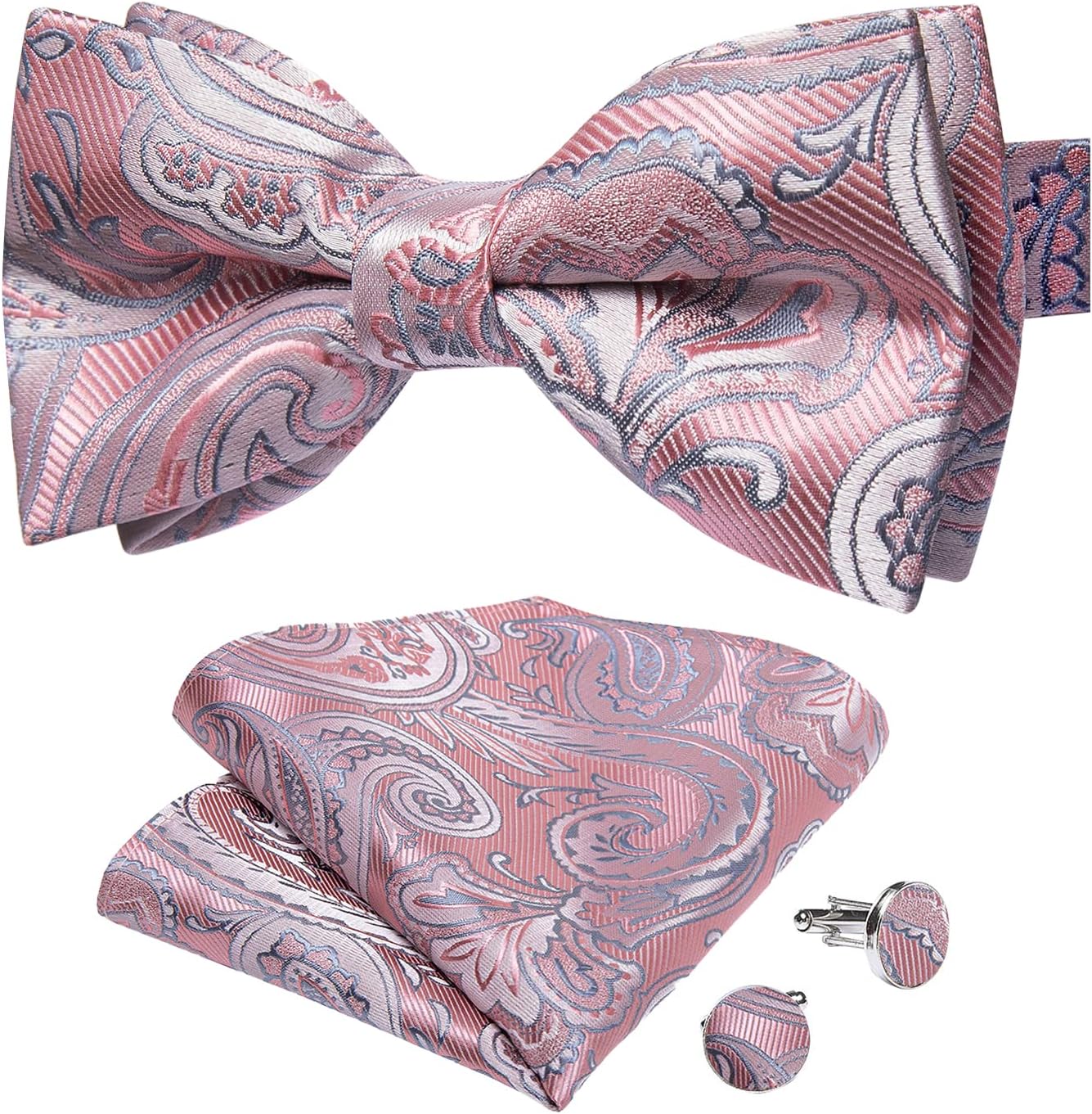 DiBanGu Paisley Pre-Tied Bow Ties for Men Silk Adjustable Bowtie and Pocket Square Cufflinks for Wedding Party