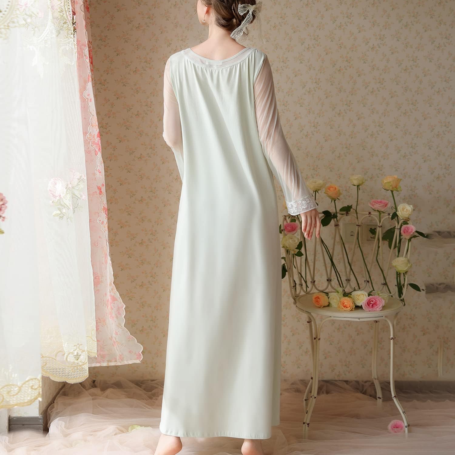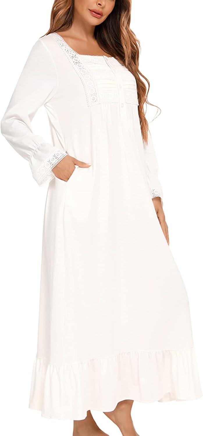 Homgro Women's Cotton Nightgown Long Sleeve Nightgowns Victorian Vintage Autumn Night Shirt